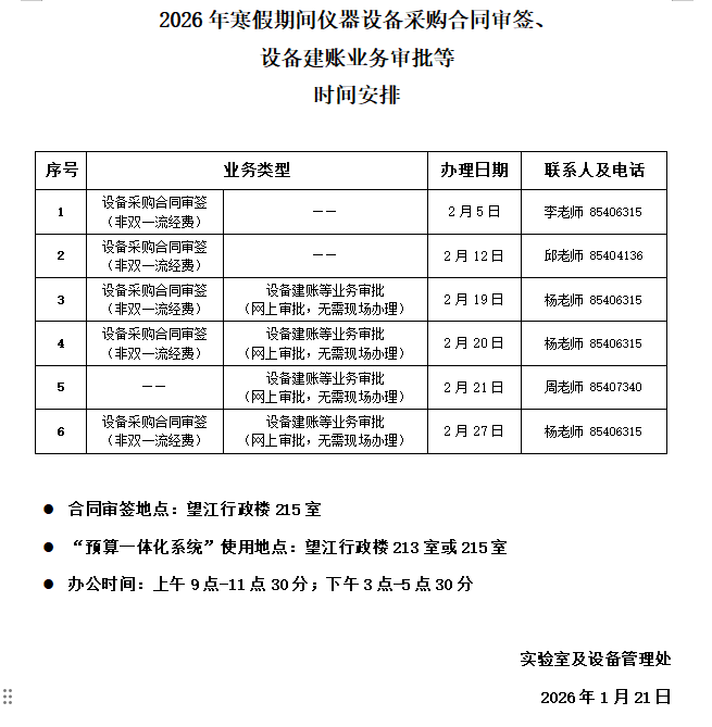 永利集团3044am2026年寒假期间仪器设备采购合同审签、设...