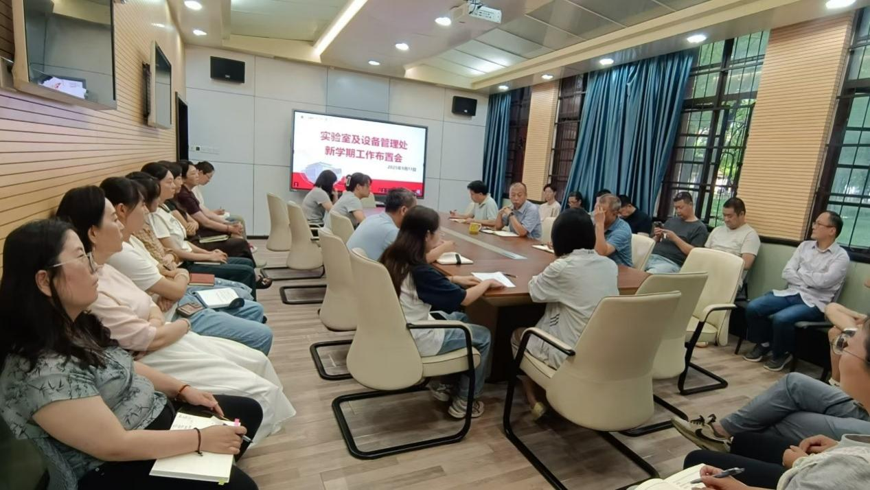 首先,金永东传达了学校新学期工作布置会精神,对暑期工作进行了总结,指出下半年全处上下要围绕学校“三年行动计划”及“十五五”规划,结合本部门自身情况,有序推进部门五项重点工作扎实开展:一是持续推进全校教学实验室育人平台建设,进一步深化实验技术与管理队伍内涵发展,有效支撑高质量创新人才培养。二是持续推进机关一流服务体系建设,提高仪器设备资源使用效益,不断加强仪器设备全生命管理服务精细化、科学化。三是深入推进一流服务保障体系建设,构建一流科研条件保障体系,进一步提高大型科研仪器设备资源共享利用,提升科技资源服务一流科研的支撑力贡献力。四是强化统筹发展与安全,持续加强全校实验室安全与环保工作力度,坚决维护校园安全稳定。五是持续提升实验技术物资的精细化服务与管理效能。