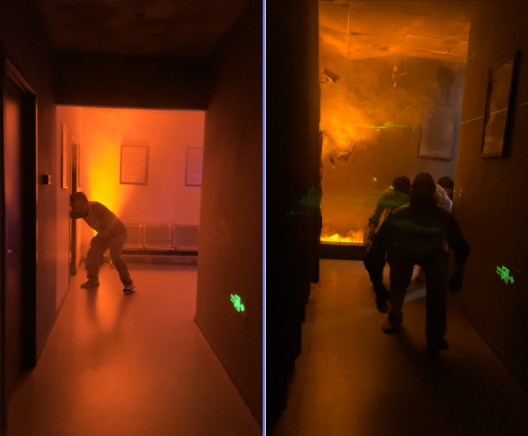 安全应急技能综合训练中心授课老师围绕室内火场逃生和初期火灾处置给大家开展了一场生动的培训。授课老师在讲解了灭火器、灭火毯、防毒面罩等消防器材的正确使用方法,以及相关消防理论知识后,老师们分别模拟使用了灭火器、灭火毯和防毒面罩,然后分小组和个人到模拟实验室和寝室房间进行了逃生演练。