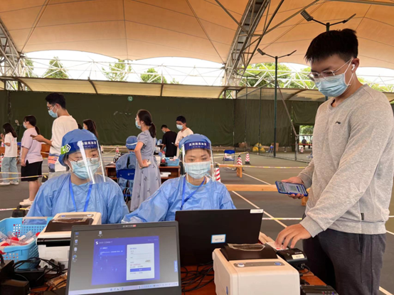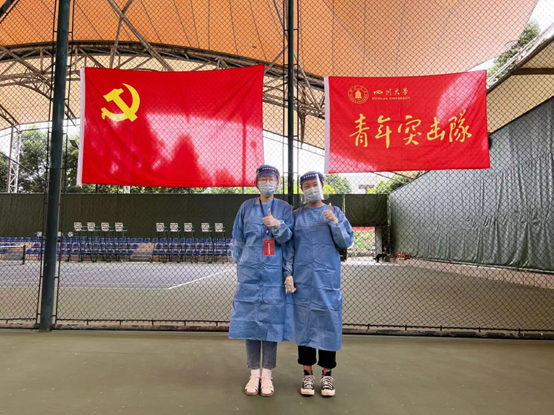 面对来势汹汹的疫情形势,党员同志们冲锋在前,坚定“共产党员先上”的政治自觉,带头冲在疫情防控一线,参加党员志愿服务队,在急难险重任务中作表率、当先锋。部门青年党员杨琴敏、谭翼和入党积极分子杨白雪,积极响应学校党委和机关党委号召,主动领命、冲锋在前,主动投入志愿服务中。在现场,她们身着防护服,为学校师生员工做好查验核酸检测报告、核酸检测点秩序维护、核酸检测信息录入、核酸试管条码录入、信息核查、流程讲解等工作,为疫情防控做出了一名党员应有的贡献。