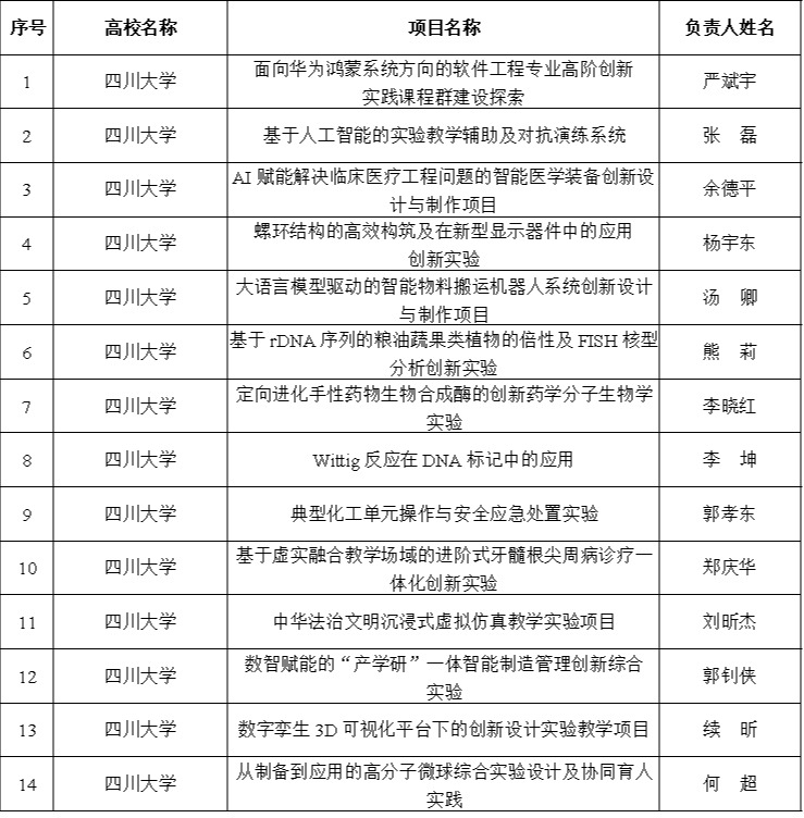 近日,四川省教育厅公布 2024 年省级普通本科高校创新性实验项目名单,共200个项目获批立项,我校获批14项。