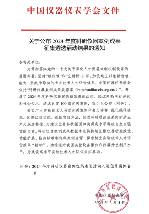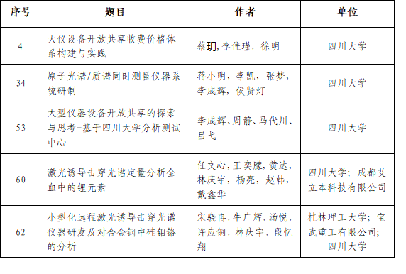 为贯彻落实党的二十大关于深化人才发展体制机制改革的重要部署,加快建立以创新价值、能力、贡献为导向的专业技术人才评价体系,中国仪器仪表学会开展了2024年度科研仪器案例征集遴选活动。近日,中国仪器仪表学会公布遴选出的100篇2024年度科研仪器优秀案例成果。我校分析测试中心等单位提交的《原子光谱/质谱同时测量仪器系统研制》《大仪设备开放共享收费价格体系构建与实践》《大仪设备开放共享的探索与思考-基于四川大学分析测试中心》《激光诱导击穿光谱定量分析全血中的锂元素》和《小型化远程激光诱导击穿光谱仪器研发及对合金钢中硅钼铬的分析》5篇科研仪器案例成功入选,入选数位列入选单位前列。