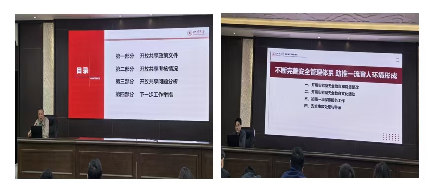 化学工程学院、华西临床医学院分享了实验室安全管理和环境保护实践经验,轻工科学与工程学院对大型仪器设备开放共享管理作了经验分享。