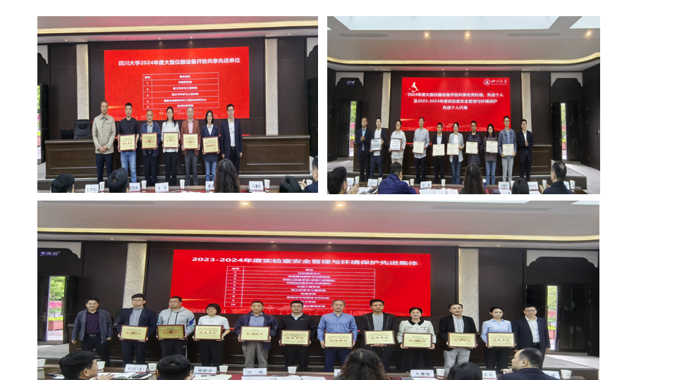 会议对2023-2024年度实验室安全管理与环境保护先进集体、先进个人和2024年度大型仪器设备开放共享考核先进单位、优秀机组、先进个人进行了表彰。