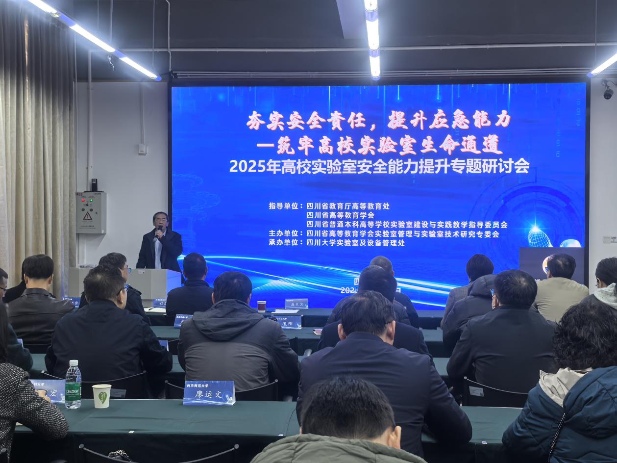 11月28日,四川省2025年高校 实验室安全能力提升研讨会在四川大学成功举办。会议由四川省教育厅高等教育处、四川省普通本科高等学校实验室建设与实践教学指导委员会指导,四川省高等教育学会实验室管理与实验技术研究专业委会主办, 四川大学永利集团3044am承办。会议以“夯实安全责任,提升应急能力—筑牢高校实验室生命通道”为主题,采取“线上+线下”相结合的形式开展。来自省内外高校4500余名代表在线参会,40余所省内高校分管实验室安全工作的部门领导与专家莅临现场出席交流。